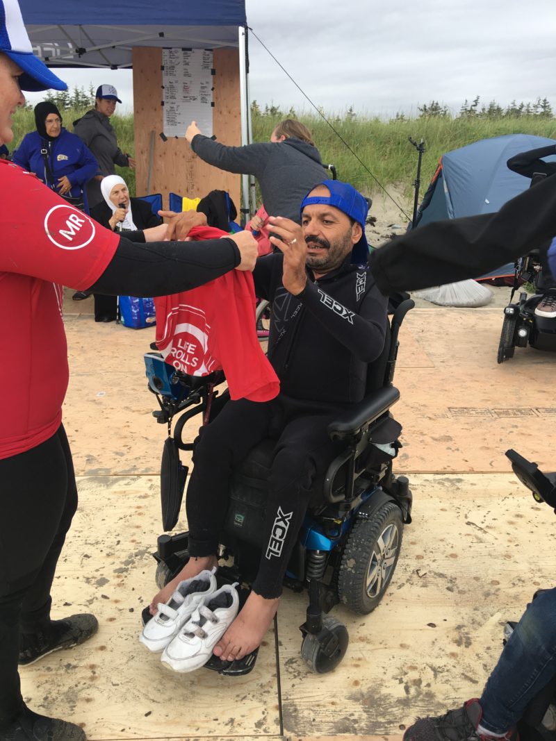 Surfs Up! On Saturday, August 18, 30 new Nova Scotians travelled to Martinique Beach for the fifth annual They Will Surf Again event hosted in partnership by SurfAble and Life Rolls On. The event provides opportunities for people with varying mobility challenges to surf or ride a wave. Although the skies were grey, participants happily took advantage of the chance to experience this one of a kind event. Teams of volunteers worked together to help each participant surf. A special thank you to SurfAble and Life Rolls On who generously helped with transportation to the beach! Check out the photos below.